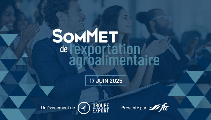 Le Groupe Export revient en force en 2025 avec la tenue du 3e Sommet de l’exportation agroalimentaire, présenté par FAC. L’événement se déroulera à Brossard le 17 juin et promet une programmation enrichie ! Au menu : panels, conférences et contenu enrichissant, offrant aux entreprises agroalimentaires exportatrices une occasion unique d’échanger avec des acteurs clés du marché. Restez à l’affût dans les prochaines semaines pour plus de détails sur les acheteurs et partenaires présents !